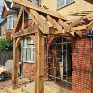 Make a grand entrance with a beautifully designed oak-framed porch. Whether open-sided or enclosed, our porches add curb appeal and shelter while staying true to your home’s character and style.